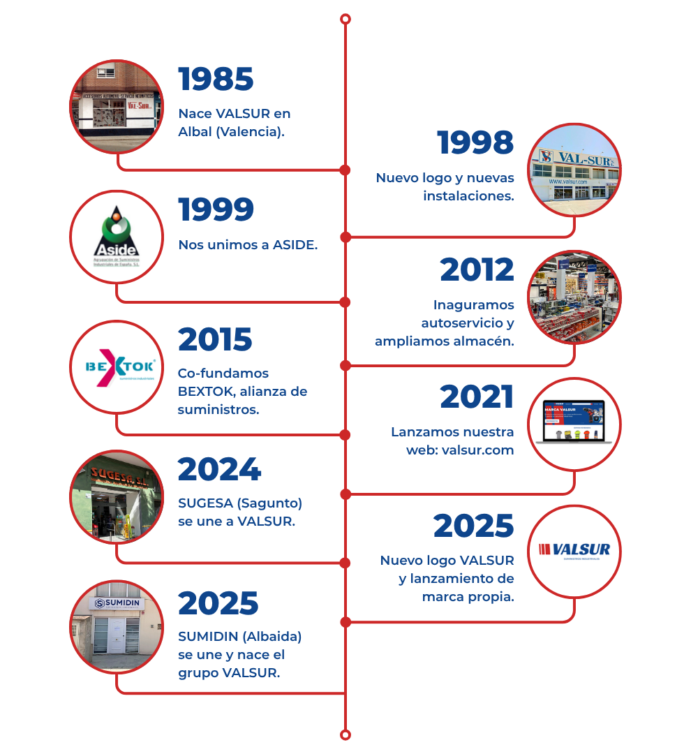 Somos un grupo empresarial formado por tres compañías especializadas en suministros industriales en Valencia: Valsur (Albal), Sugesa (Sagunto) y Sumidin (Albaida).