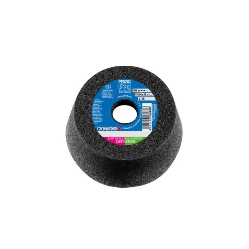 TAZA CORTE PFERD 50 ETT 110 SG STONE. Esta avanzada muela de copa está diseñada para ofrecerte un rendimiento inigualable y una durabilidad excepcional en las aplicaciones más exigentes. Con la línea de alto rendimiento SG CAST+STONE, cada tarea de canteado y desbaste se convierte en una operación más eficiente y rentable.