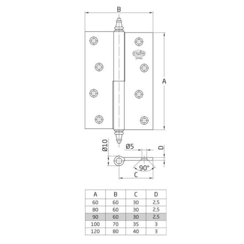 Datos Técnicos de la Bisagra Latón Mate Mod. 1007