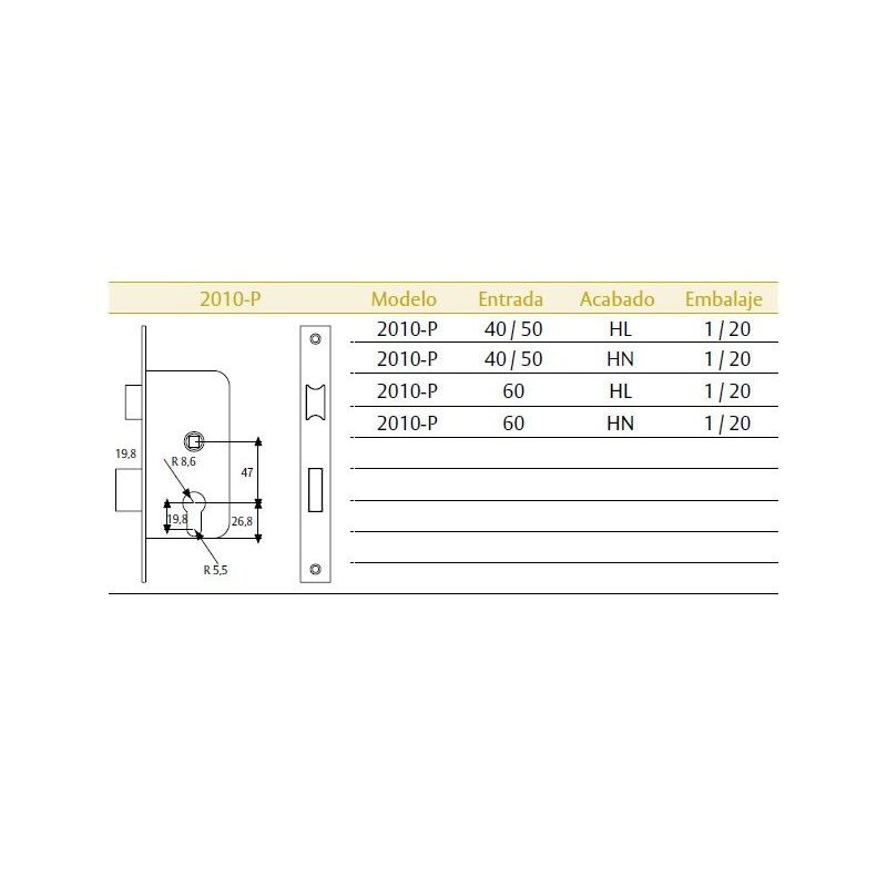 ·Entrada de 60 mm para adaptabilidad a distintos tipos de puertas.