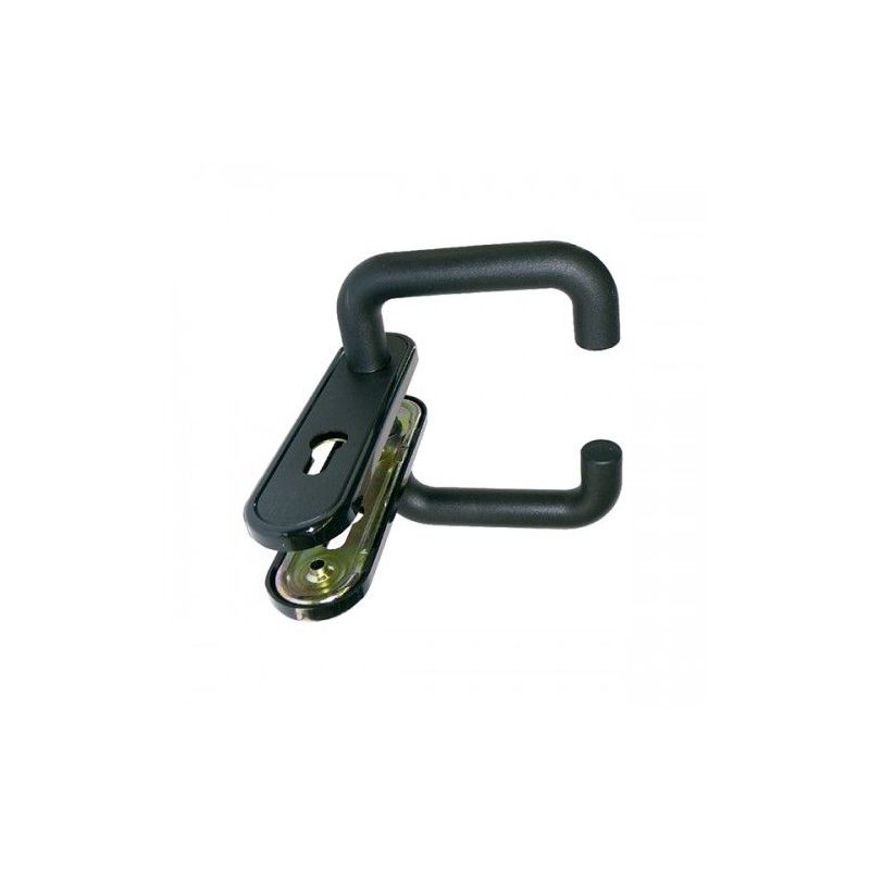La maneta para puerta cortafuegos con placa con agujero y color negro es un accesorio de alta calidad que cumple con los estándares de seguridad necesarios para puertas cortafuegos.