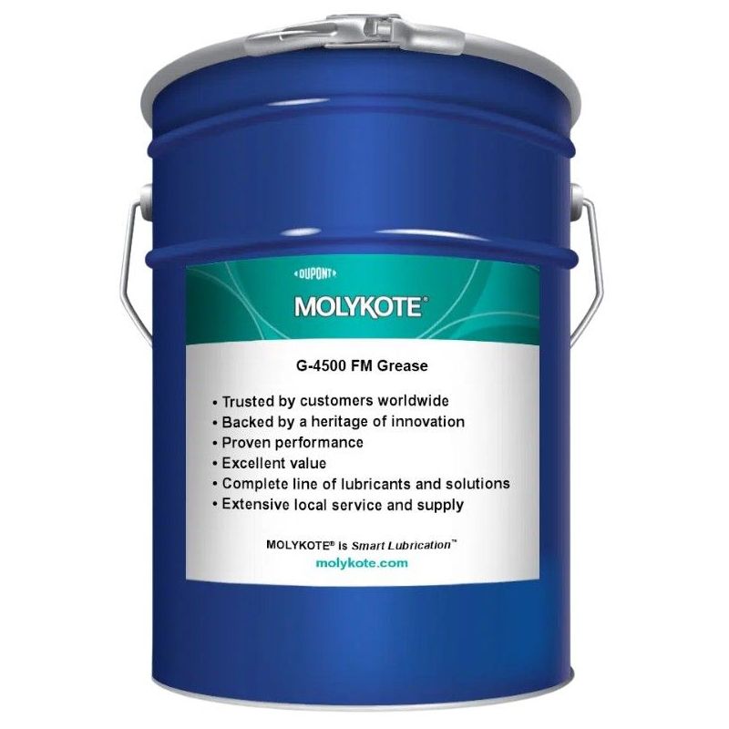 Molykote G-4500 FM es una grasa sintética multifuncional diseñada para ofrecer una lubricación duradera en equipos sometidos a cargas y temperaturas variables, incluso en entornos donde puede producirse contacto accidental con alimentos.