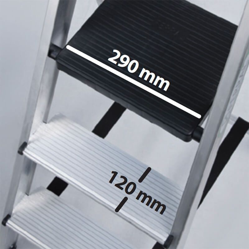 ·Peldaños antideslizantes de gran superficie: Trabajo más cómodo y seguro.