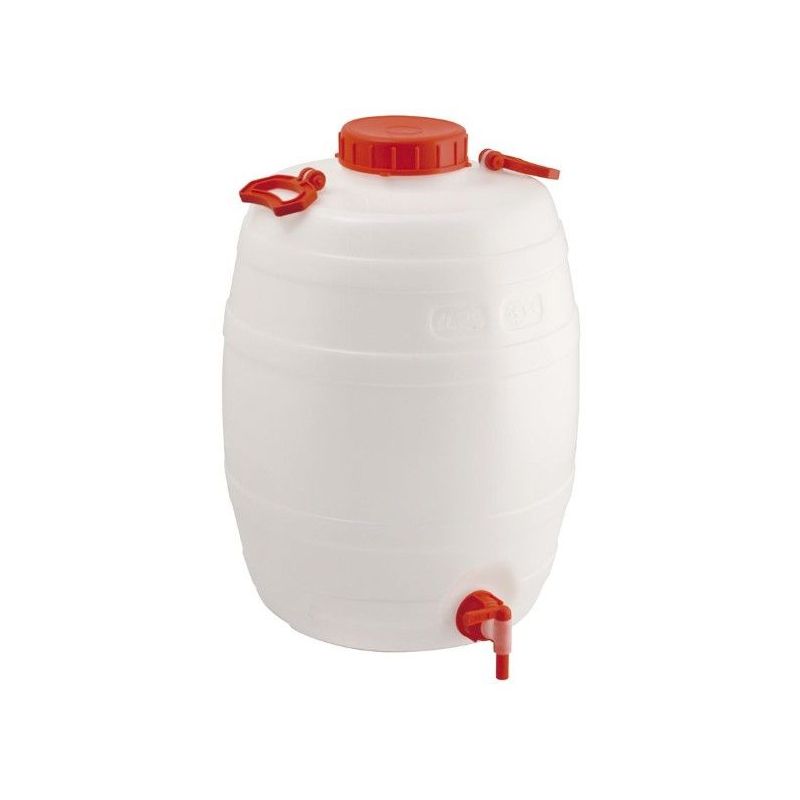 Fabricado en plástico de alta resistencia, permite almacenar líquidos de forma segura, mientras que el grifo integrado facilita un vertido controlado, evitando derrames y mejorando la eficiencia en el uso diario.