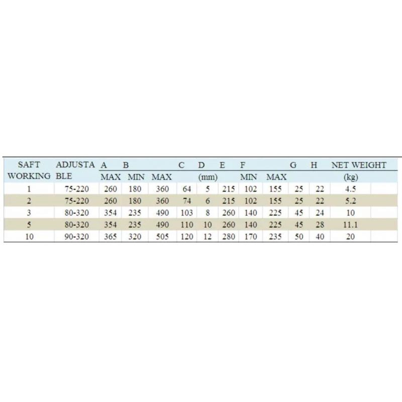 Amplio Rango de Carga: Disponible en capacidades de 1, 2, 3, 5 y 10 toneladas, proporcionando opciones flexibles para diversas aplicaciones.