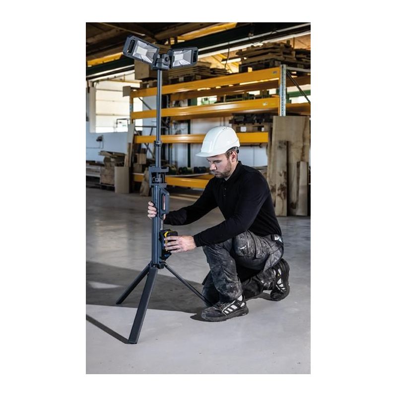 La TOWER 5 CONNECT permite orientar ambos focos de forma independiente con rotación de 360°, facilitando una iluminación precisa en trabajos de pintura, instalación o reforma. Su estructura extensible hasta 2 metros mejora la cobertura lumínica en áreas amplias.