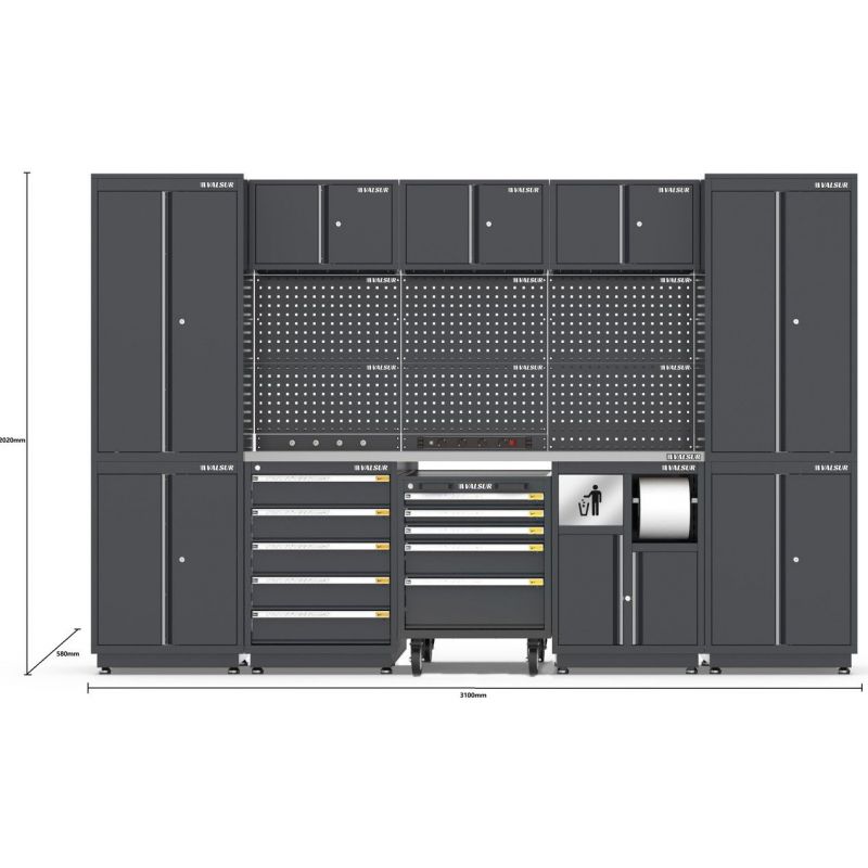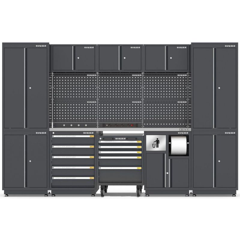 El conjunto mobiliario para taller de Valsur está diseñado para ofrecer una solución completa de almacenamiento y organización en entornos industriales. Con una estructura robusta, funcional y adaptable, este mobiliario optimiza el uso del espacio, garantizando un entorno de trabajo ordenado y eficiente. Además, permite personalización con el logo de tu empresa, reforzando la imagen corporativa del taller o espacio de trabajo.