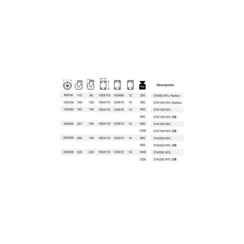 RUEDA AFO DE LA SERIE 374 DE NYLON
