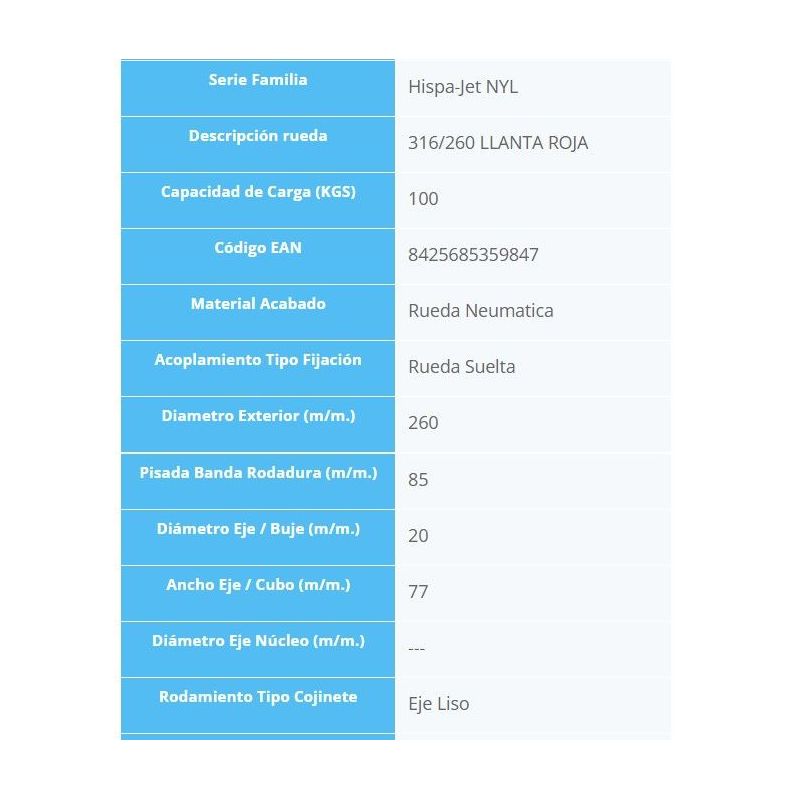 La rueda neumática AFO 316/260 es ideal para carretillas y aplicaciones industriales que requieren una alta capacidad de amortiguación y suavidad en la rodadura. Su diseño con llanta roja ofrece resistencia y durabilidad, facilitando el movimiento en suelos irregulares o con obstáculos.