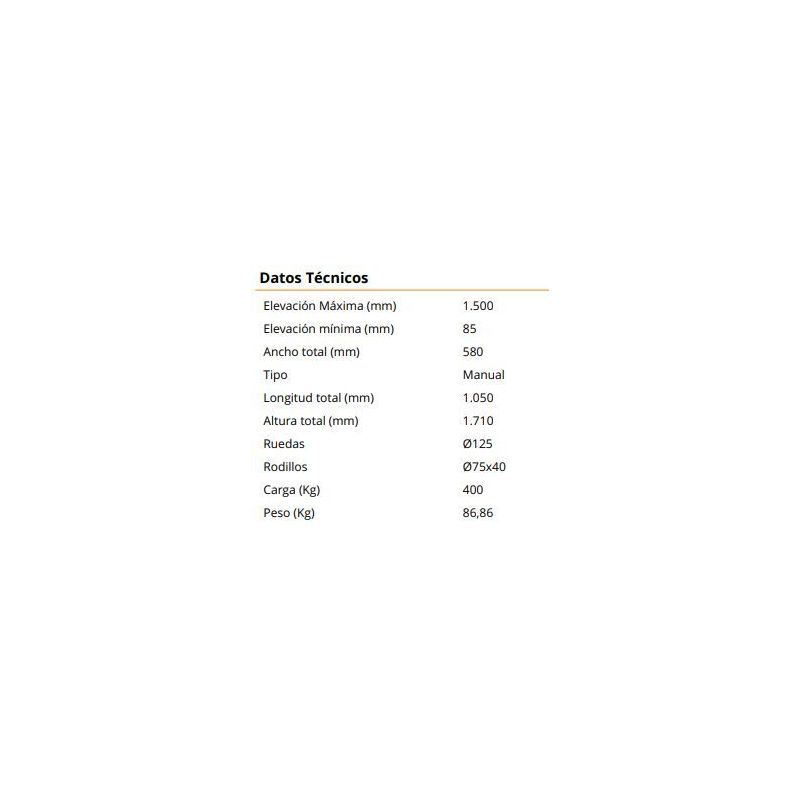 • Elevación y transporte sencillos de cargas hasta 400 Kg.