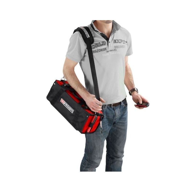 Fabricada en material textil técnico resistente, está pensada para soportar el uso intensivo en entornos industriales, talleres y obras. Es especialmente adecuada para técnicos de mantenimiento, electricistas industriales y personal de asistencia que necesitan una bolsa robusta y funcional para intervenciones rápidas.