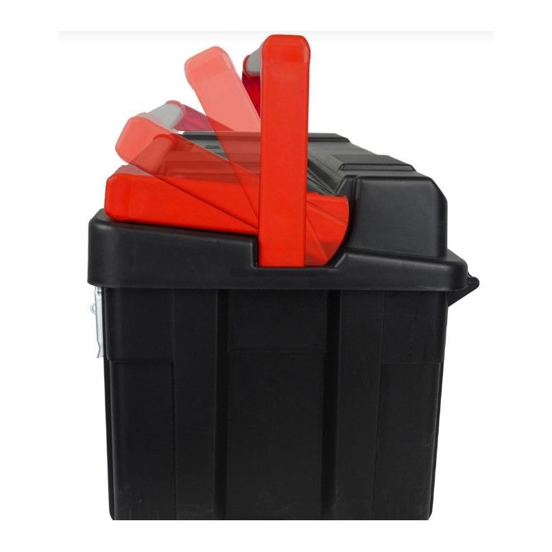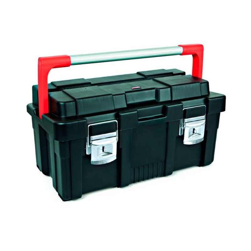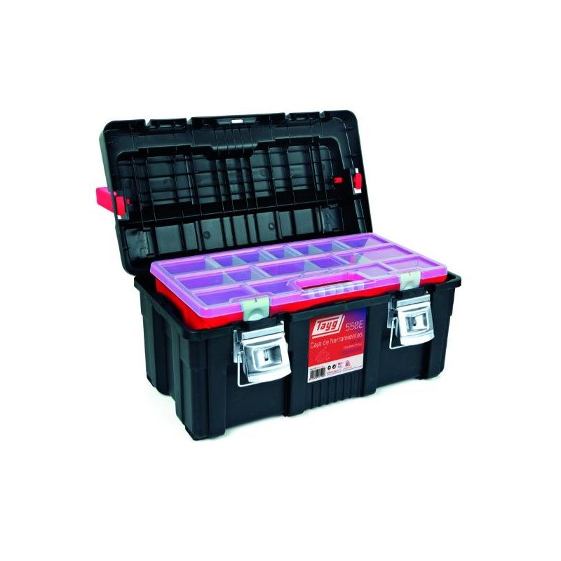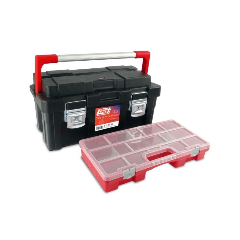 ·Colores: Caja: negra. Bandeja, cerradura y asa: roja.