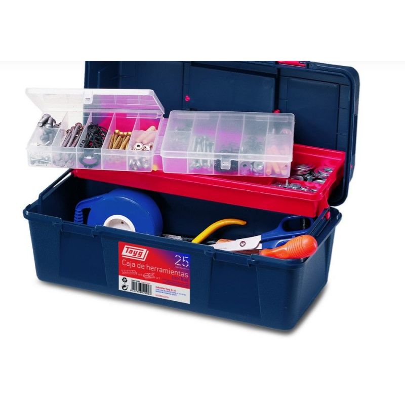 Caja de herramientas de plástico Tayg con 1 bandeja + 2 organizadores + 1 estuche