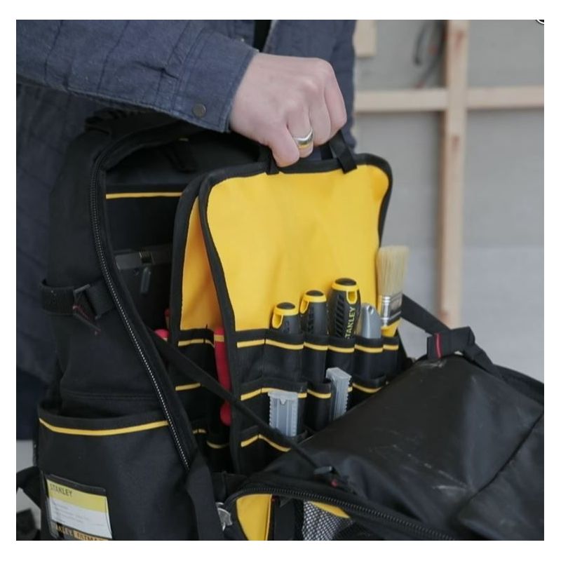·Tiene 50 departamentos para almacenar una gran variedad de herramientas, espacios laterales para transportar herramientas largas como niveles y un gran compartimento para herramientas eléctricas.