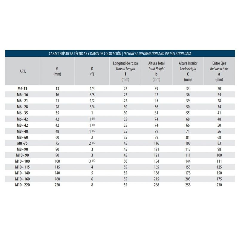 El Abarcón Acero M es una herramienta esencial diseñada para proporcionar una fijación segura y estable de tubos pesados en diversas aplicaciones industriales. Fabricado con acero inoxidable de alta calidad Aisi 304-A2, este abarcón garantiza durabilidad y resistencia a la corrosión, haciendo que sea ideal para entornos exigentes.