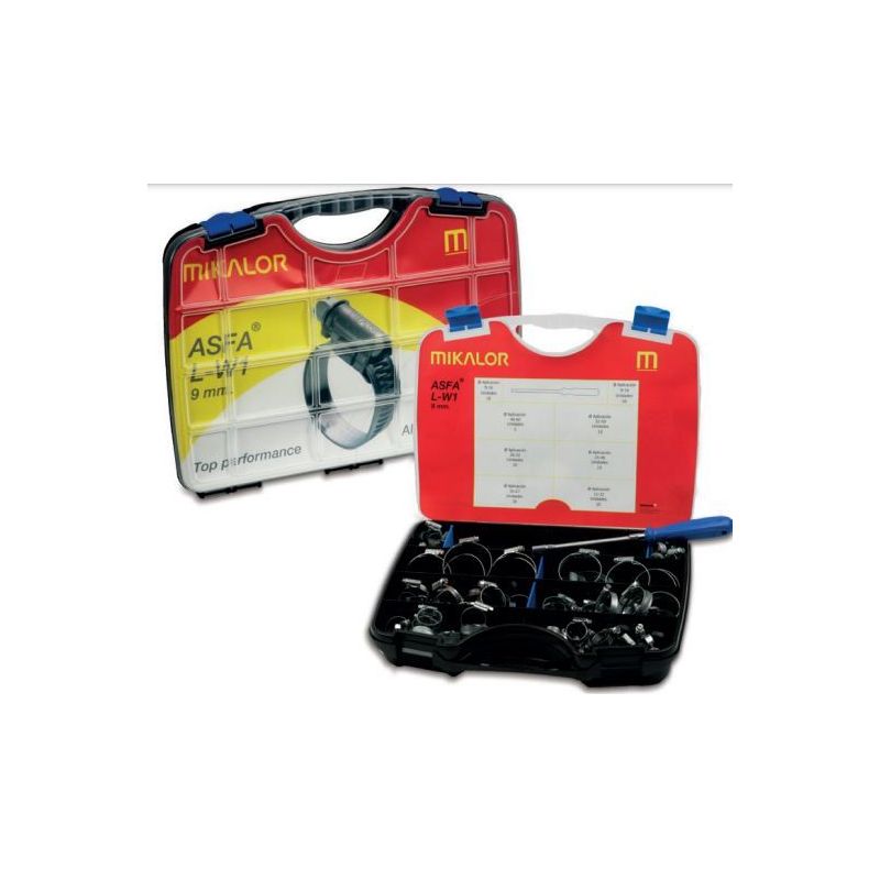 El surtido de abrazaderas ASFA L ofrece la solución ideal para una amplia gama de necesidades en la fijación de elementos. Este conjunto versátil se presenta en maletines que abarcan diversas calidades de materiales, proporcionando una opción económica y práctica. Diseñado para facilitar la selección y transporte, este surtido garantiza tener siempre a mano las medidas de abrazaderas más comúnmente utilizadas.