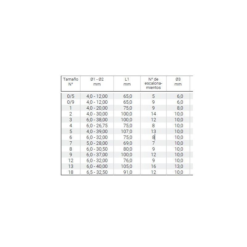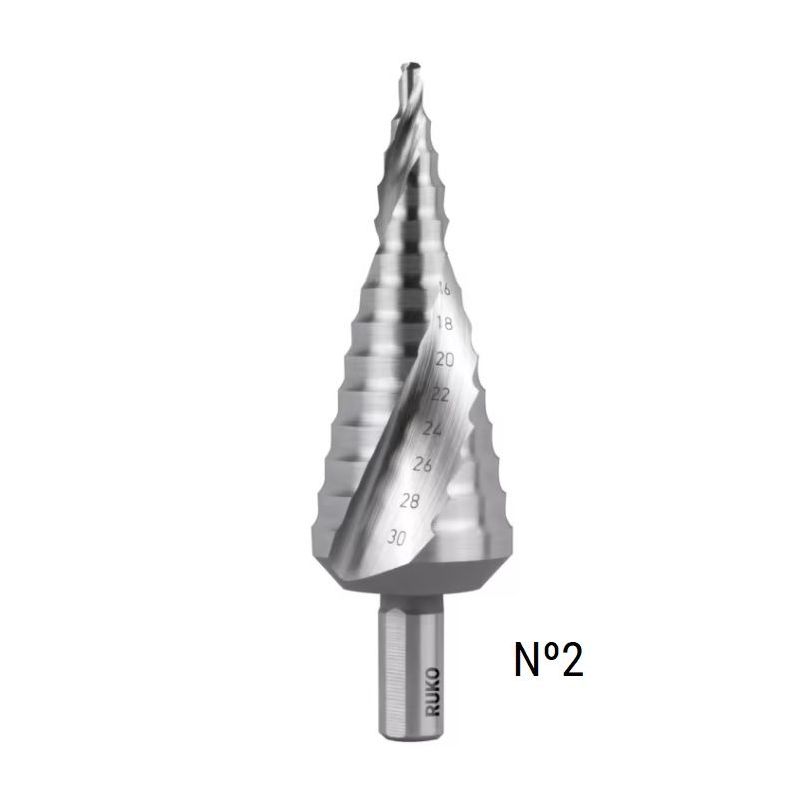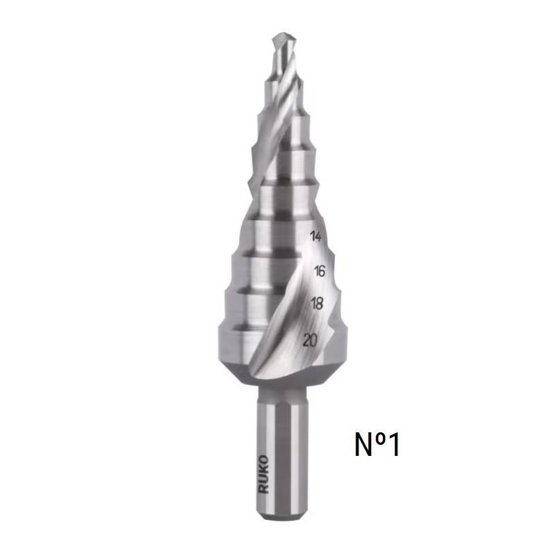 Broca escalonada HSS Ruko, estriado en espiral con punta dividida