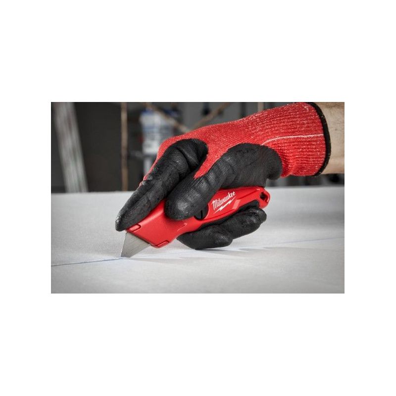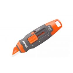Este cutter Milwaukee destaca por su cuerpo totalmente metálico, que aporta una gran durabilidad frente a golpes y uso continuo. Incorpora un sistema de cambio rápido de cuchilla sin necesidad de herramientas y un práctico almacenamiento interno para 5 hojas, lo que lo convierte en un cuchillo hoja fija eficiente y funcional en entornos industriales.