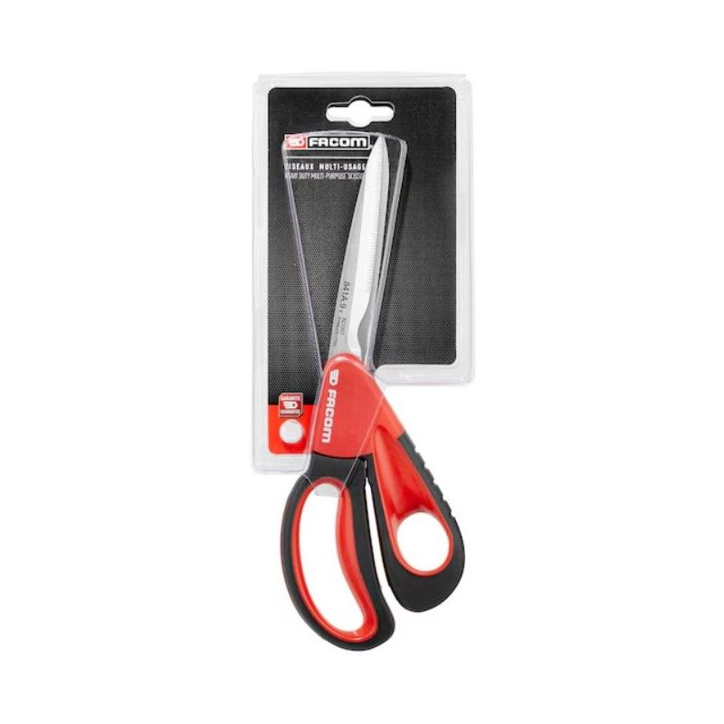 Las tijeras multipropósito FACOM de 9 pulgadas están diseñadas para trabajos de corte en mantenimiento industrial, talleres y uso técnico profesional. Su diseño robusto permite cortar diferentes materiales utilizados habitualmente en trabajos de instalación, mantenimiento y montaje.