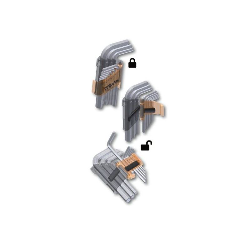 ·Incluye 9 llaves macho hexagonales acodadas con cabeza esférica.