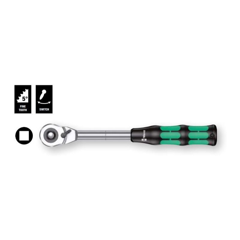La Carraca Zyklop 1/2" Wera 8006 C combina lo mejor del diseño metálico con la ergonomía del mango Kraftform. Su estructura híbrida de bajo peso, junto a una cabeza delgada y palanca larga, la convierte en una herramienta versátil, cómoda y potente, incluso para espacios reducidos. Además, su diseño permite la prolongación para aumentar el par de apriete cuando se necesita más fuerza.