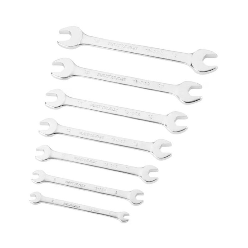 • Set de 7 llaves fijas con las medidas más utilizadas en mantenimiento y montaje general.