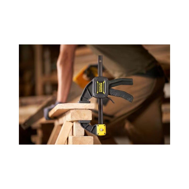 El sargento monomanual FATMAX Stanley es una herramienta de sujeción profesional diseñada para ofrecer rapidez, confort y firmeza en aplicaciones de ensamblaje, carpintería ligera, ajustes técnicos y mantenimiento industrial. Su operación con una sola mano permite una sujeción ágil incluso en espacios reducidos, facilitando trabajos continuos sin necesidad de utilizar ambas manos durante el apriete.