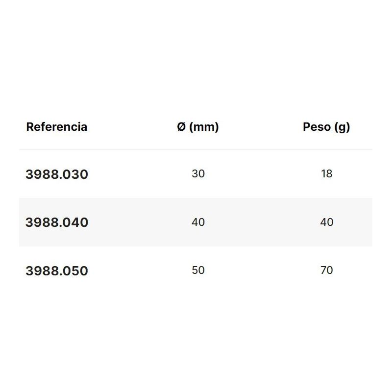 ·Dimensiones disponibels (diámetro): 30, 40, 50 mm.