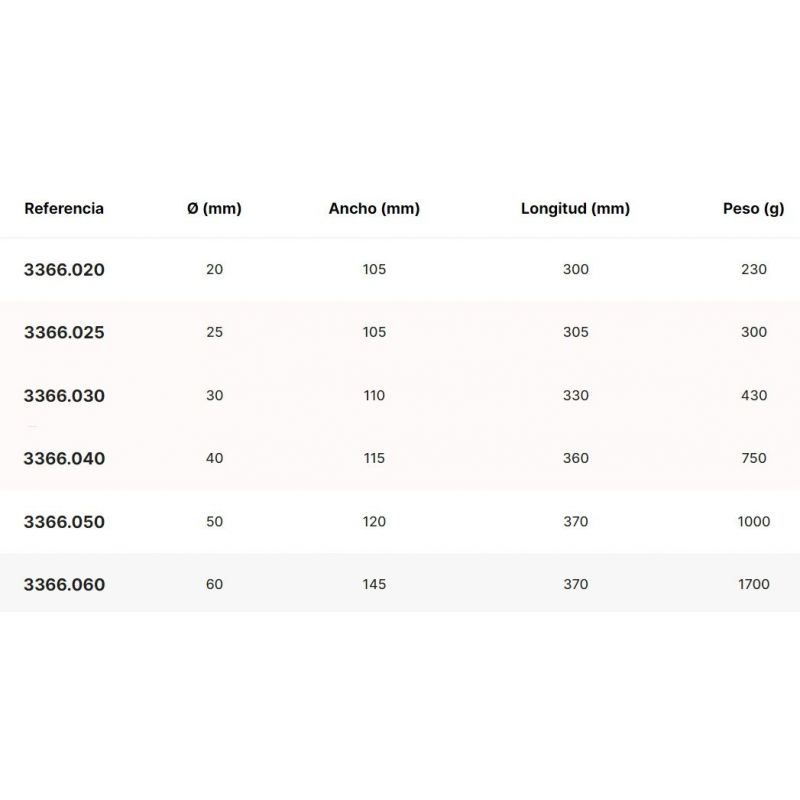 ·Dimensiones disponibles (diámetro): 20, 25, 30, 40, 50, 60 mm.