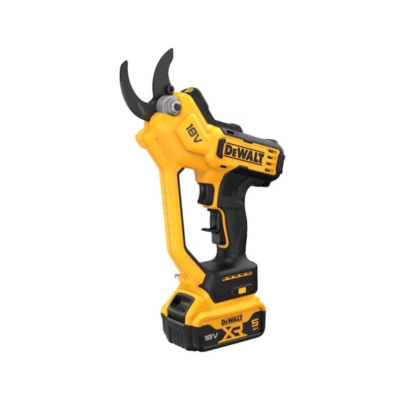 Este modelo de tijera de poda eléctrica a batería permite realizar cortes limpios y controlados con menor fatiga frente a herramientas manuales tradicionales. El kit incluye 1 batería Li-Ion XR 18 V 5 Ah, adecuada para jornadas de trabajo prolongadas en mantenimiento exterior.