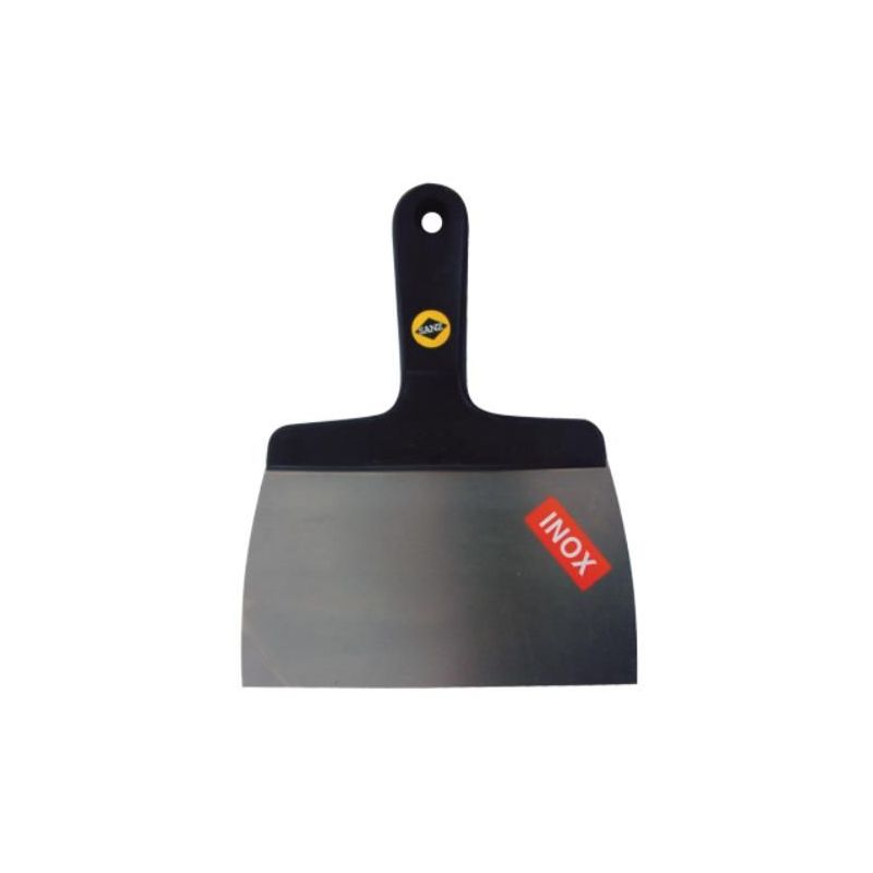 La espátula de acero inoxidable es una herramienta esencial en trabajos de tematización y emplastecimiento de paredes. Su diseño flexible y duradero la convierte en una opción ideal para aplicar mortero y emplastecer superficies de manera precisa y eficiente.