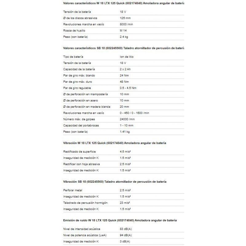 El Combo Set 2.4.4 18 V es un conjunto completo de herramientas eléctricas que ofrece un rendimiento excepcional para una variedad de aplicaciones. Este juego incluye un taladro atornillador de percusión de batería SB 18 y una amoladora angular de batería W 18 L 9-125.