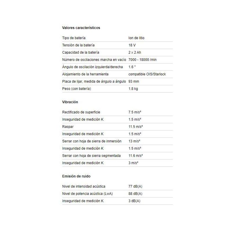 ·Potente multi-herramienta de batería oscilante.