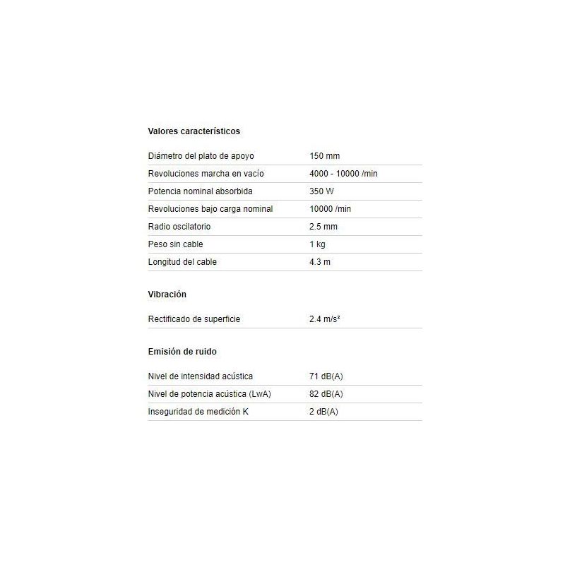 ·Radio oscilatorio de 2,5 mm para una máxima calidad de superficies con buena potencia de abrasión