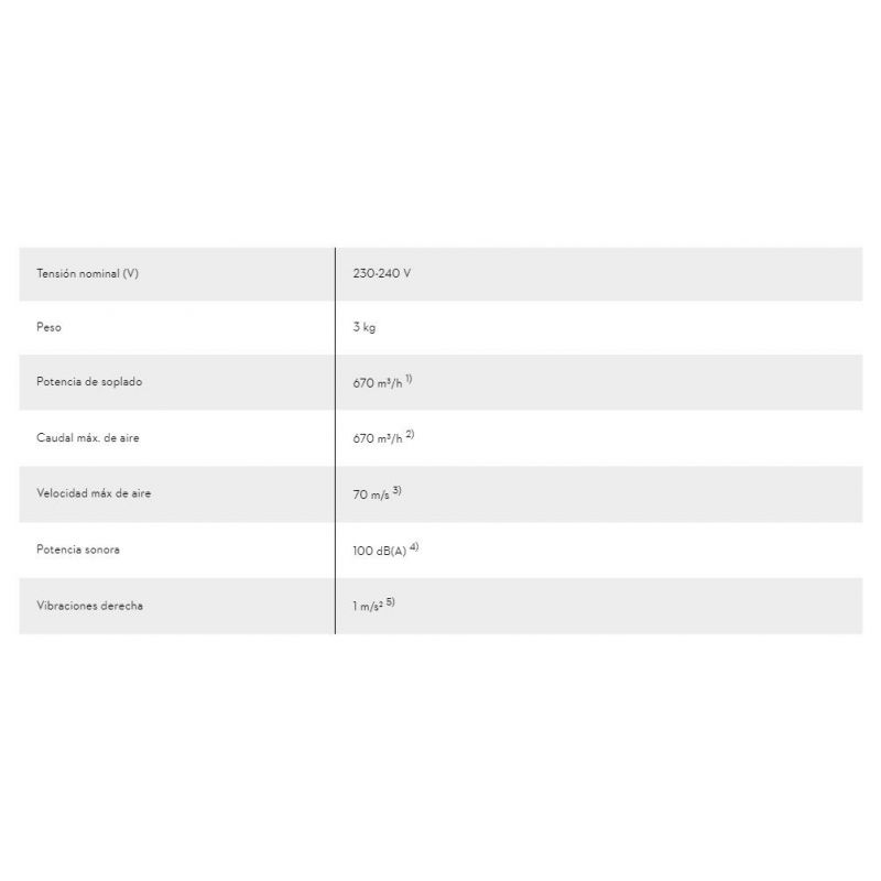 ·Caudal Máximo de Aire: 670 m³/h, asegurando un volumen de aire constante y potente durante el uso.