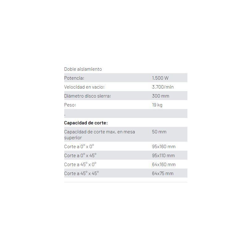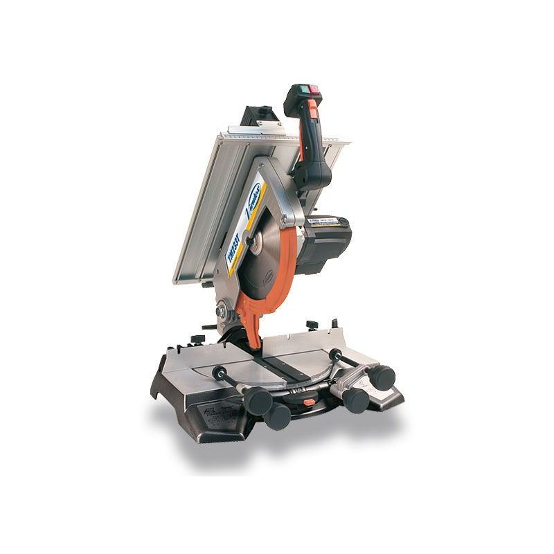 Tronzadora abatible portátil con mesa superior de gran precisión y potencia, gran capacidad de corte, cabezal abatible de 0° a 45°, disco para aluminio de MD 72z y juego de prensores. Sistema de seguridad integral, dotada de freno del disco y seguro contra arranques accidentales por corte del suministro eléctrico. Doble transmisión por correas dentadas, sin ruido de engranajes. Incorpora un botón de bloqueo, para facilitar el cambio del disco sierra. Mesa transportable regulable incluida.Equipada con láser de precisión para facilitar el corte. Activación automática del mismo al poner la máquina en marcha. Incluye interruptor on/off, ideal para desactivarlo al trabajar con la mesa superior.
