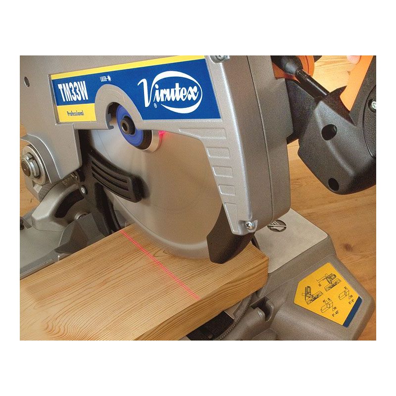 Equipada con láser de precisión para facilitar el corte. Activación automática del mismo al poner la máquina en marcha. Incluye interruptor on/off, ideal para desactivarlo al trabajar con la mesa superior. El dispositivo láser va montado directamente sobre el disco sierra, de forma que el haz de láser mantiene la precisión en cualquier posición de corte.