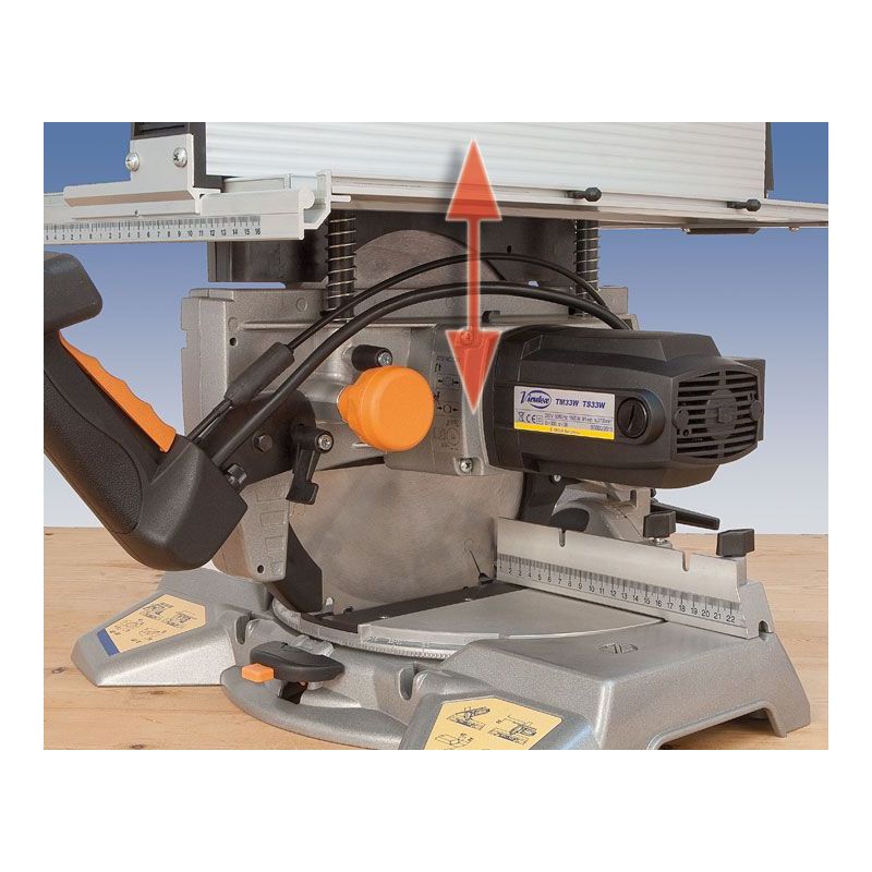 La TM33W está equipada con un freno del disco patentado, el cual detiene el disco en segundos tras desconectar el interruptor, seguro contra arranques accidentales por corte del suministro eléctrico, protección del disco sierra y conexión para aspiración externa.