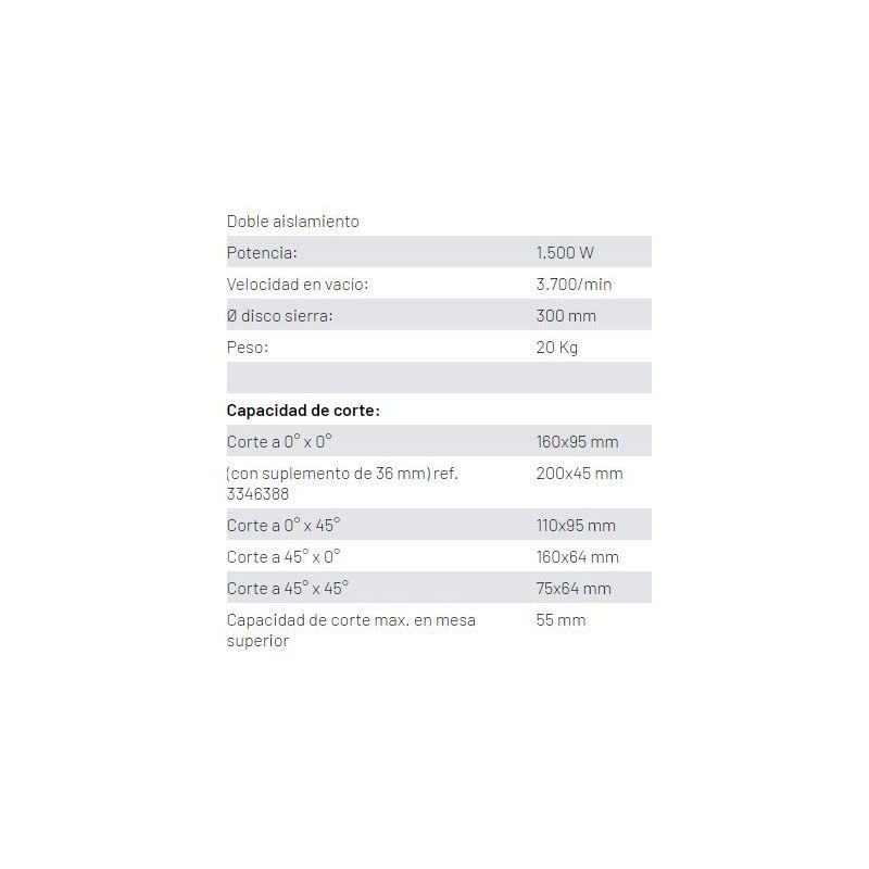 Disco de sierra profesional de metal duro (48 dientes) Ø 300 mm, láser de precisión, tope corte longitudes y llaves de servicio.