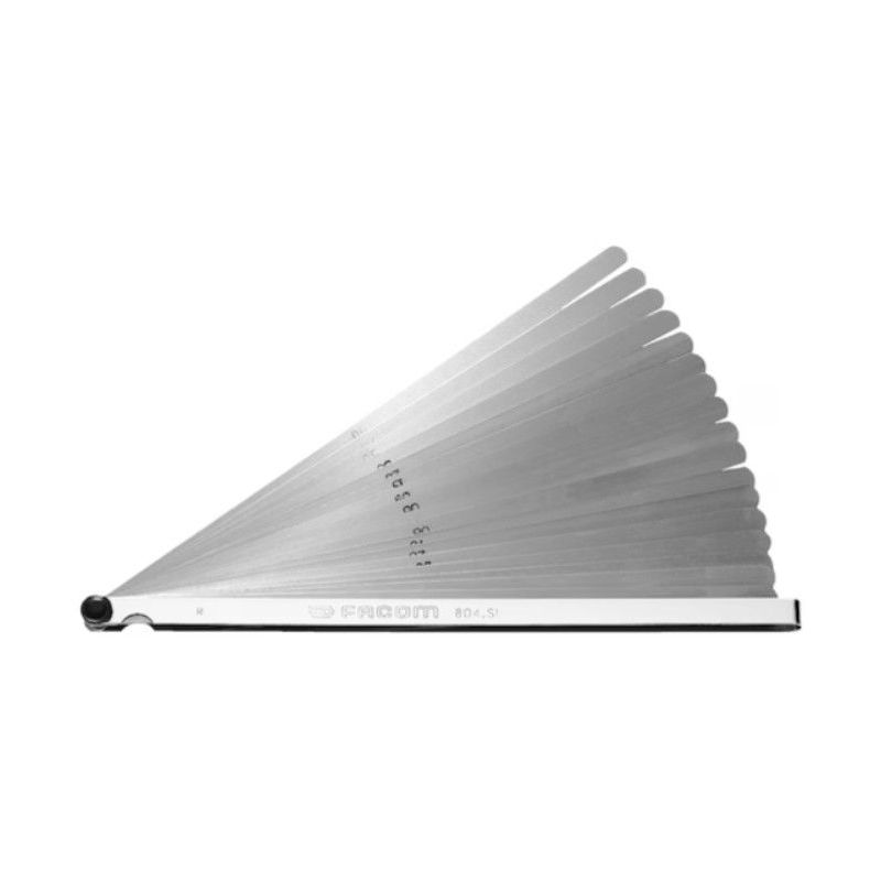 El juego de galgas de espesores FACOM está diseñado para la medición precisa de holguras y ajustes en mantenimiento industrial, mecánica de precisión y control técnico. Permite verificar separaciones mínimas entre componentes mecánicos, asegurando tolerancias correctas en maquinaria y equipos industriales.