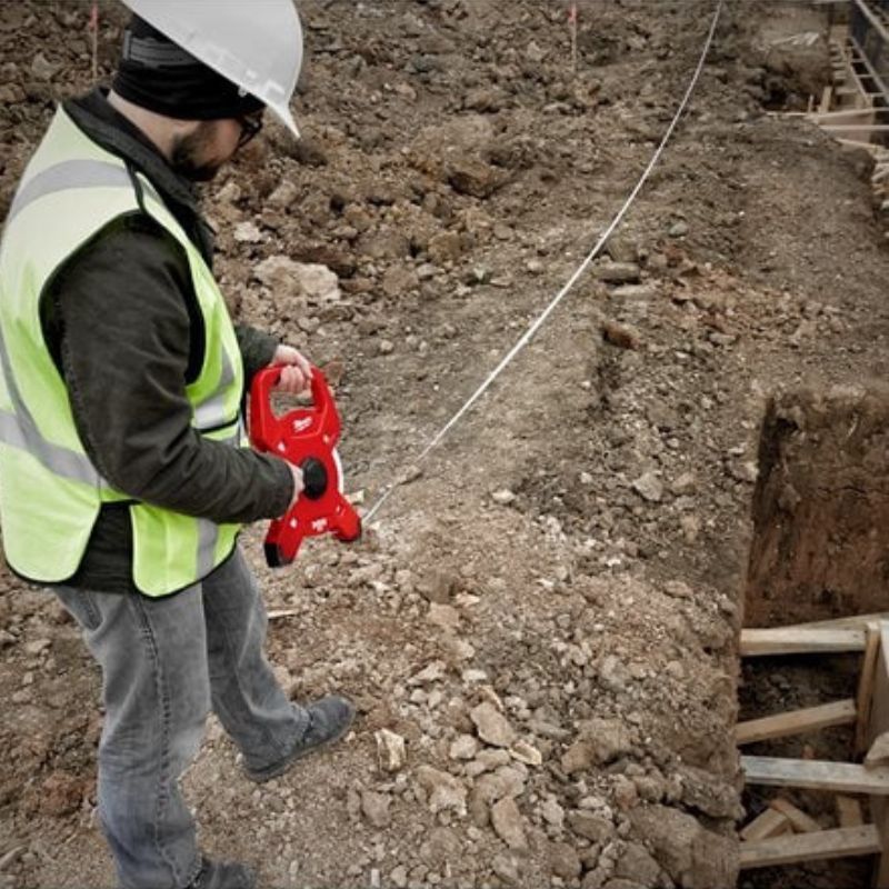 Esta cinta larga está diseñada para trabajos de medición donde se necesita ligereza, durabilidad y un uso fluido. La cinta de fibra de vidrio reduce el peso total de la herramienta y mejora su manejo en mediciones prolongadas, tanto en interior como en exterior.