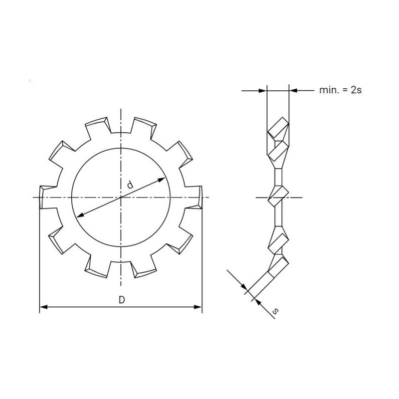 La forma A, al disponer el dentado en la parte exterior, permite un contacto uniforme de todos los dientes sobre el diámetro mayor, ofreciendo la máxima resistencia al aflojamiento.