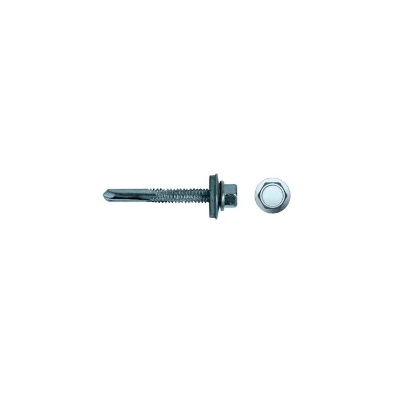 Incorpora una arandela con junta EPDM que garantiza la estanqueidad de la unión, evitando filtraciones de agua y asegurando la durabilidad de la instalación. Su punta broca larga facilita la perforación en materiales de mayor espesor.