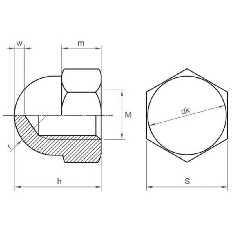 Tuerca ciega para diferentes aplicaciones: sanitarios, fontanería, mobiliario. Cuerpo de latón.