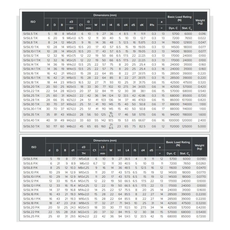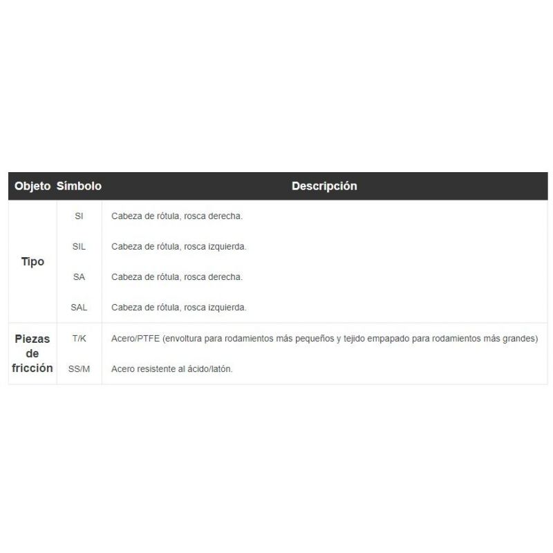 ·Material: Acero/PTFE (envoltura para rodamientos más pequeños y tejido empapado para rodamientos más grandes)