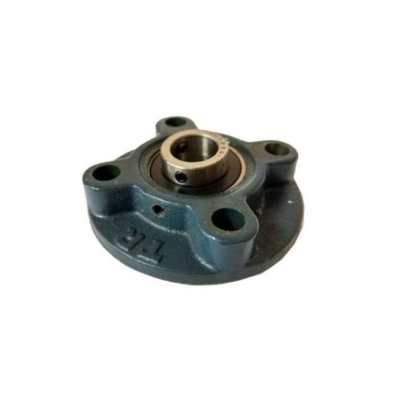 Estas unidades de rodamientos de bolas con pestaña redonda cumplen con las normas JIS. Están formadas por un rodamiento de inserción, con un aro interior prolongado y fijación con tornillo, y son adecuadas para aplicaciones en las que el sentido de giro es constante o alternado. El rodamiento está montado en un soporte de fundición, que puede atornillarse a la pared o al marco de la máquina. Las unidades de rodamientos de bolas pueden admitir una desalineación inicial moderada, pero normalmente no permiten el desplazamiento axial.