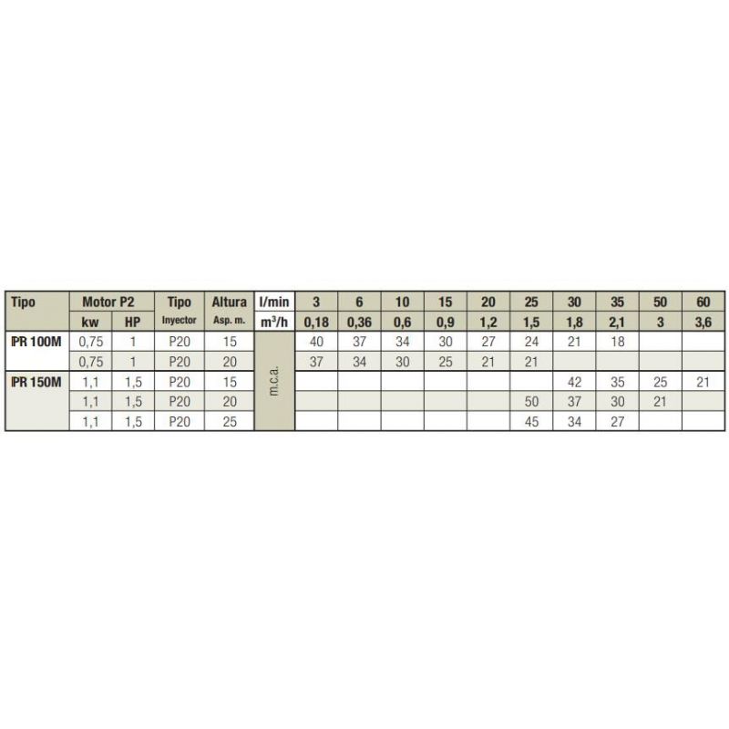 ·Construcción robusta: cuerpo de bomba, soporte motor y cuerpo inyector en hierro fundido; rodete estampado de latón; difusores e inyector reforzados con fibra de vidrio al 20 % (material GFN2V).