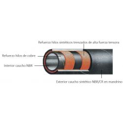 La manguera universal (por metro) para hidrocarburos, aceite y petróleo 16 bar está diseñada para la impulsión de combustible en automóviles, transporte de aceites y otros hidrocarburos.
