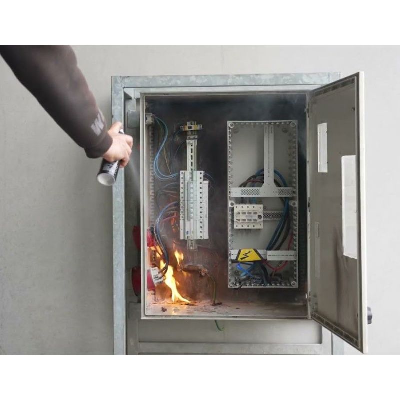 Spray extintor compacto para apagar fuegos de clase A, B, D, F y aparatos eléctricos hasta 1.000 V. Seguro para personas, mascotas y medio ambiente. Sin productos químicos agresivos.