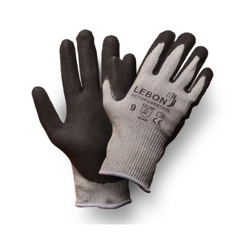 Guante tricotado sin costuras, galga 13, 100% polietileno, 100% acero inoxidable e hilo 100% poliamida gris texturizada con